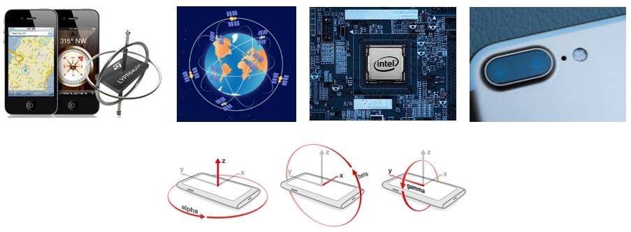 Giroscópio: Função de posicionamento em relação ao espaço, portanto em qual direção está o dispositivo.